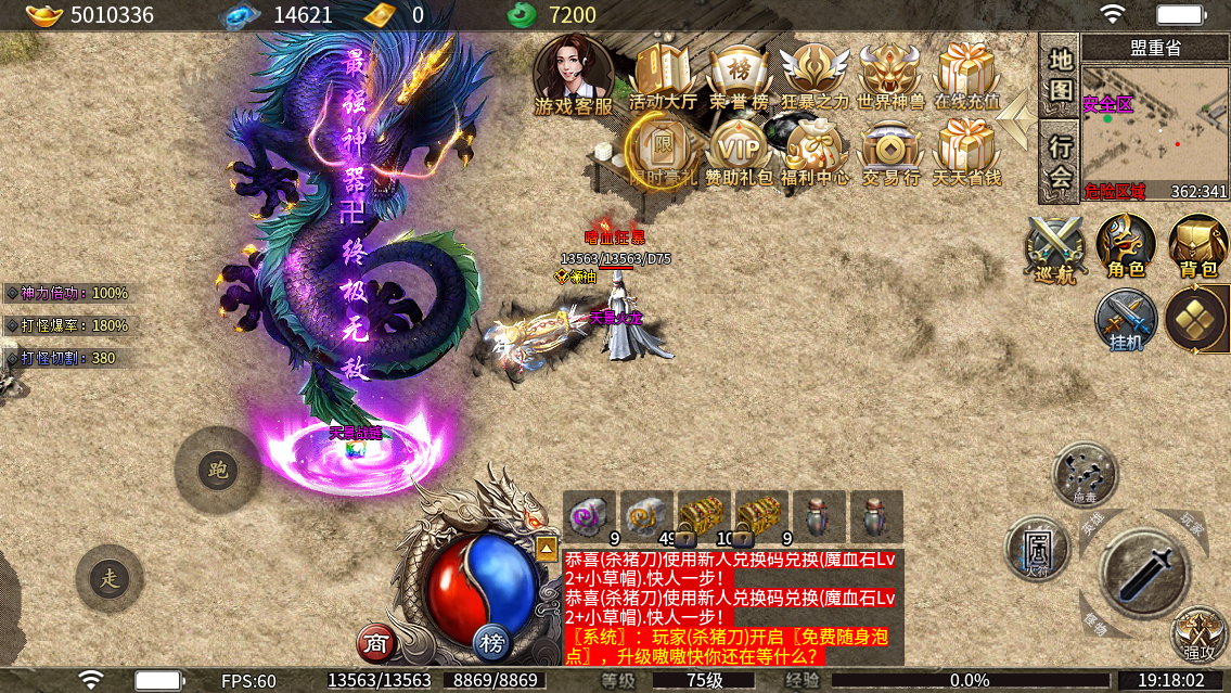 本服充值为 :1元=100龙玉 10000元宝 10灵符,无其它比例